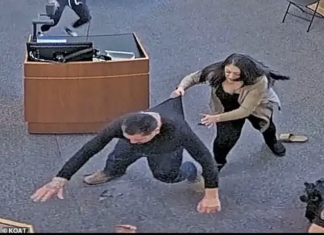 A chaotic scene played out in a New Mexico courtroom when family members of a murder victim attacked their alleged killer, Alexander Segura Ortiz. The incident began when Carlos Lucero and Pete Ysasi, relatives of the deceased, charged at Ortiz during a hearing, leaping over a barrier to reach him. Security cameras captured the event, showing a police officer attempting to protect Ortiz from Lucero’s assault. As they all fell to the ground, Ysasi joined in on the attack, with other family members and officers rushing to intervene. One woman unsuccessfully tried to pull Ortiz’s father away, while Ysasi wrestled with him. Lucero and another man piled onto the scuffle, all while a police officer held Ortiz down. In a desperate move, one of the women involved used a folding chair to strike the officer and Ortiz. The melee highlighted the volatile nature of courtroom proceedings, especially when family members feel strong emotions about the cases being heard.