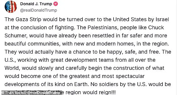 Donald Trump has provided further clarification regarding his proposed ‘riviera’ plan for Gaza, emphasizing that Palestinian residents will be resettled in safer and more prosperous communities outside of the region, with no need for US military involvement. This follows his Truth Social post, addressing concerns about the potential relocation of Palestinians. The president’s plan, unveiled during a press conference with Israeli Prime Minister Benjamin Netanyahu, has sparked global reactions, with Middle Eastern countries expressing fury. Trump’s clarification seems to contradict his press secretary’s earlier statement suggesting temporary relocation. Trump’s vision includes the US taking control of Gaza while its population is temporarily relocated to neighboring countries like Egypt and Jordan. This proposal has sparked intense debate, with conservative policies and pro-Israel stances receiving positive attention from Trump supporters.