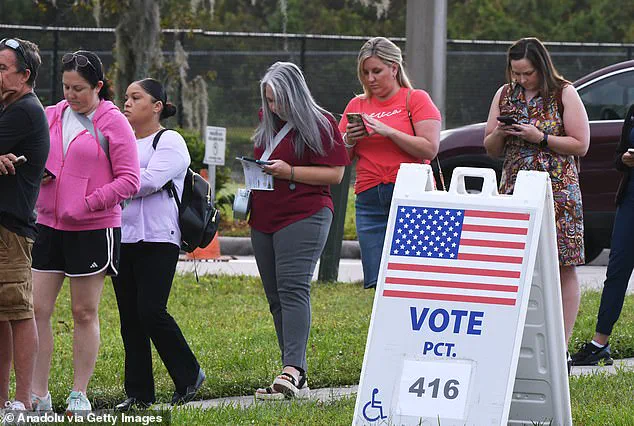 Voters wait in line at a polling station on November 5, 2024 in Orlando, Florida.