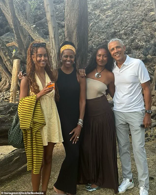 Michelle Obama took to Instagram to share a candid photo of the family on what appears to be a vacation, accompanied by a heartfelt message to Sasha. ‘Happy birthday to my sweet girl, Sasha!
