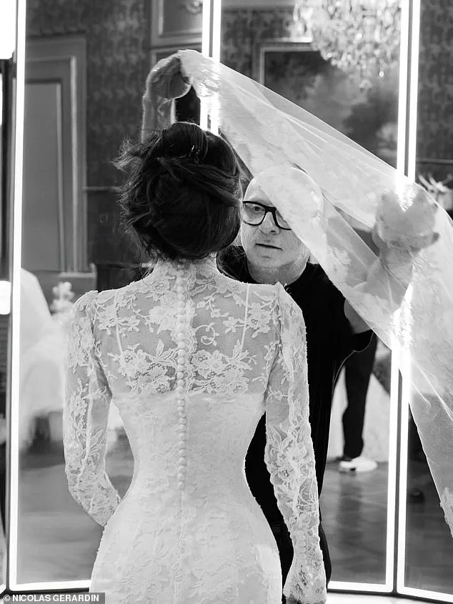 Another showed the legendary designer Domenico Dolce placing the lace veil on her head, a moment that captured the reverence with which the team approached their work.