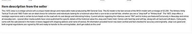 The Jeep in question was listed on eBay for sale, with the auction post appearing early Tuesday morning.