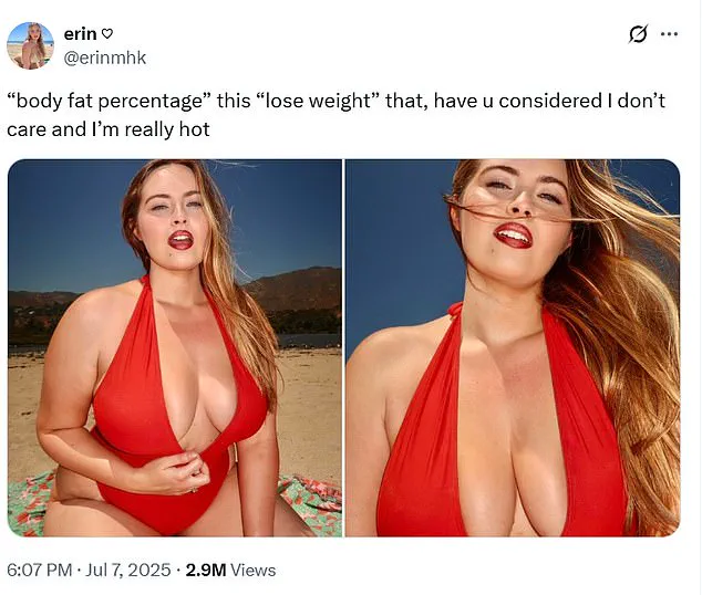 Erin Marley Klay, a 24-year-old plus-size model with a growing presence in the fashion industry, found herself at the center of a viral controversy after sharing a series of bikini photos on X (formerly Twitter).