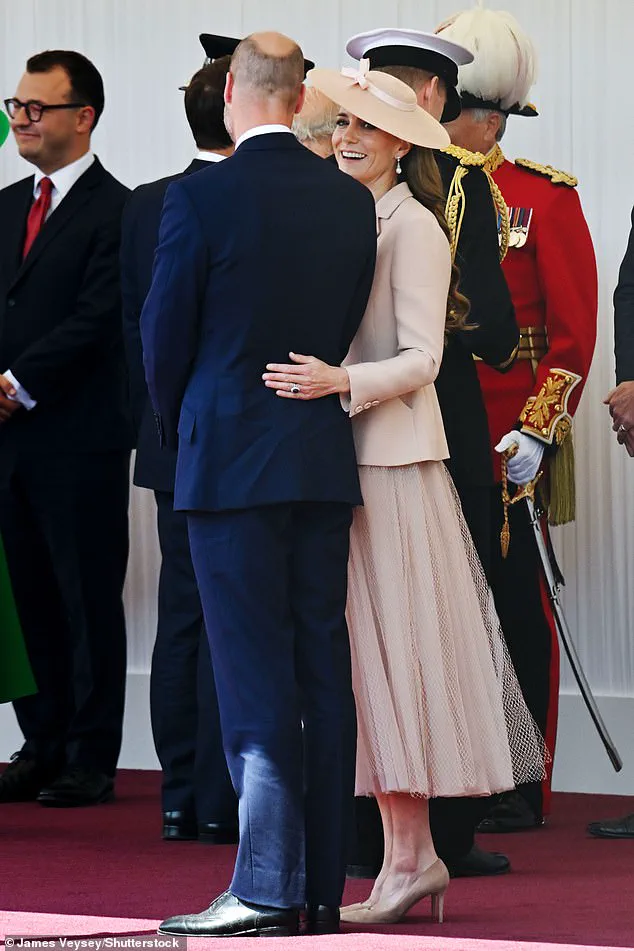 As they attended the ceremonial welcome at Datchet Road, the couple engaged in relaxed conversation, with Kate placing her hand on William’s back—a subtle yet poignant reminder of the personal and public roles they navigate together.