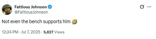 However, the post quickly became the subject of ridicule, with observers pointing out an unusual distortion in the bench’s appearance around Jeffries’ midsection.