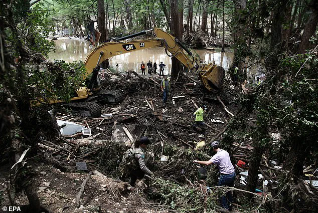 A witness said he ‘was holding tight to his babies, and he just got swept away’ Family members confirmed that John and his wife, Julia (pictured), were among those found dead in the Texas floods The floods ravaged Kerr County as the death toll topped 100 victims, many of which were children (Pictured: First responders looking for survivors and remains) She recalled the haunting images she witnessed during the floods, including when she rushed to the riverside to see multiple RVs washed away.
