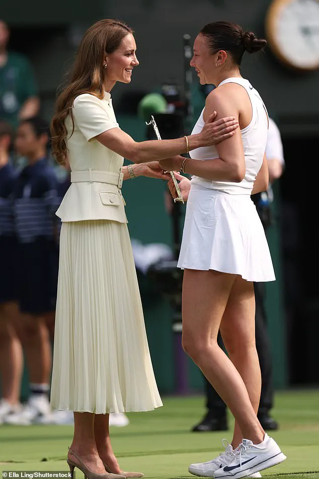 As the sun set over the iconic Centre Court, the atmosphere was one of celebration and reflection. Świątek, draped in the Ladies’ Singles Trophy, celebrated with her team on the Clubhouse Balcony, while Kate waved to the crowd, her smile a symbol of the enduring connection between the monarchy and the sport that has captivated the world for over a century.