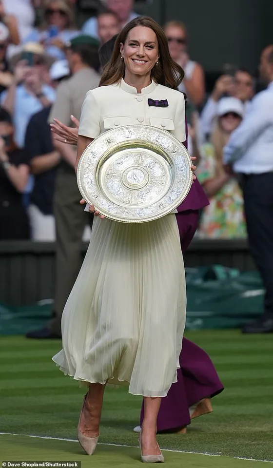 Her presence on Centre Court, where she had earlier arrived in a striking cream ensemble adorned with a Wimbledon bow, symbolized her role as a patron of the All England Lawn Tennis Club.