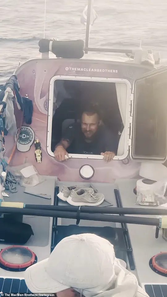 While swapping rowing shifts with Ewan, Lachlan was making his way into the cabin when he was ‘hit by a big side-on wave and washed overboard’ during a raging storm.