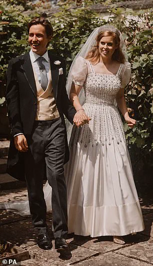 Beatrice’s choice of attire was particularly symbolic, as she wore a dress by Norman Hartnell that had been originally worn by Queen Elizabeth II in 1961.