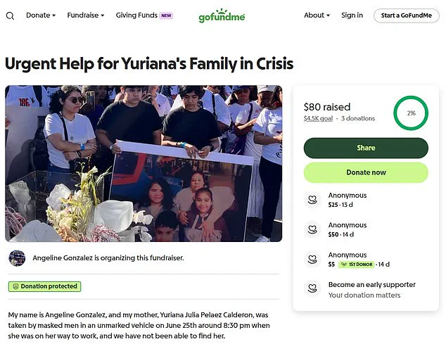 The agency issued a statement that painted Calderon not as a victim, but as a fraudster who had exploited the system. ‘Yuriana Julia Pelaez Calderon was never arrested or kidnapped by ICE or bounty hunters — this criminal illegal alien scammed innocent Americans for money and diverted limited DHS resources from removing the worst of the worst from Los Angeles communities,’ the statement read, a direct challenge to the family’s narrative.