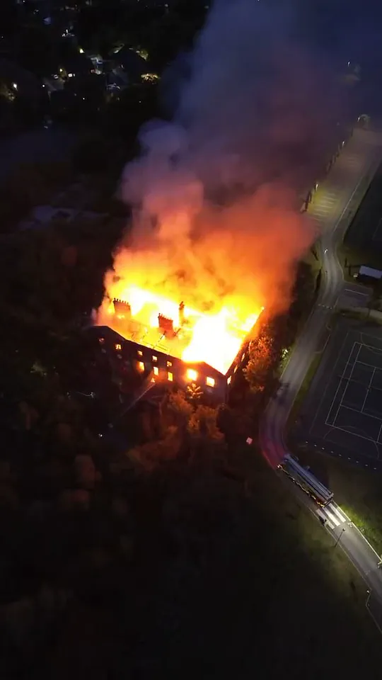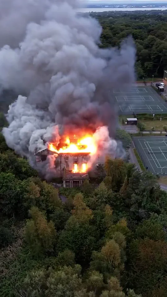 The blaze, which erupted at Woolton Hall in Liverpool on Tuesday evening, has left the once-majestic structure in a state of severe disrepair, with its roof collapsed, walls blackened by flames, and windows shattered.