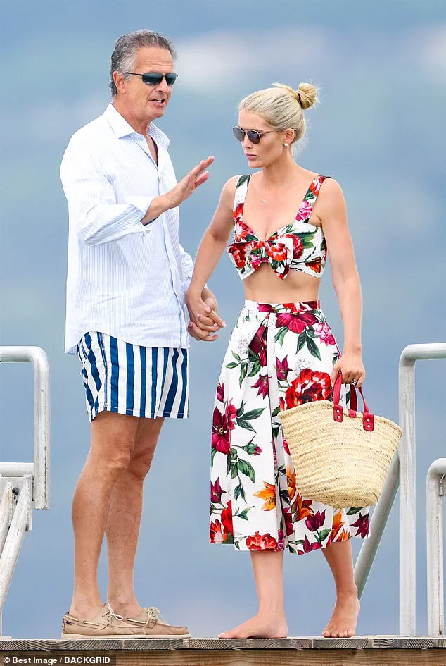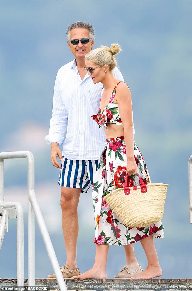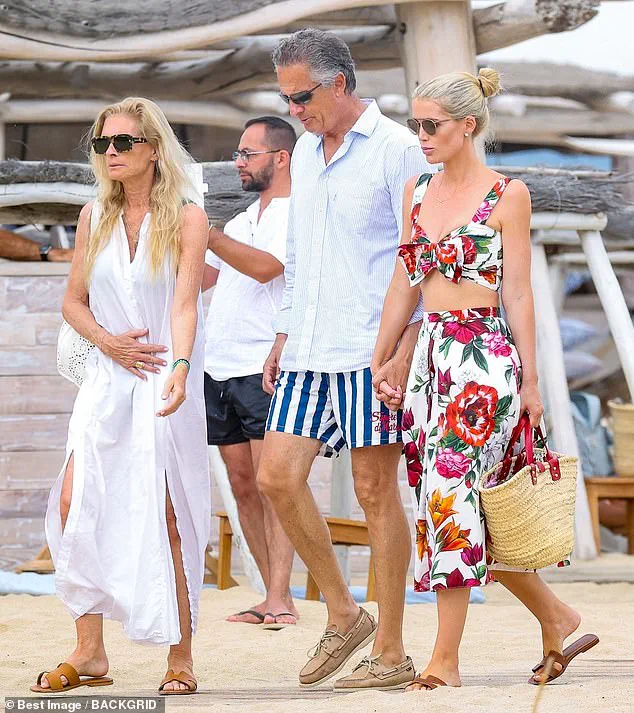 Her mother, Victoria, mirrored her daughter’s sartorial flair in a crisp white linen dress, while Michael, the South African multi-millionaire, chose a pale blue linen shirt and striped beach shorts that echoed the relaxed yet refined aesthetic of the event.