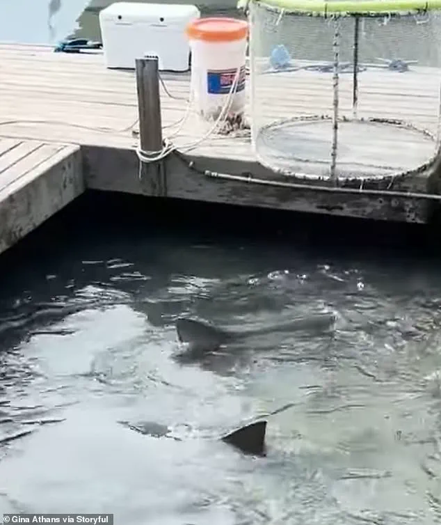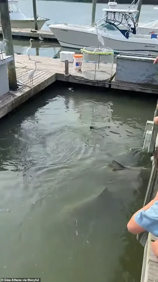 According to Athans, the scene unfolded near the restaurant’s dock, where local fishermen were cutting up their catch and tossing scraps into the water.