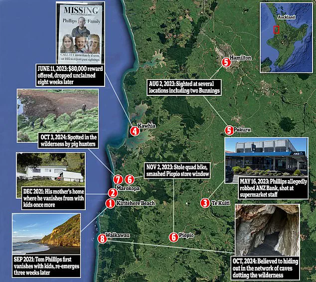 For four consecutive winters, Phillips and his children have allegedly endured the harsh elements of New Zealand’s Waikato region, a rural area marked by dense forests, rugged terrain, and limited infrastructure.