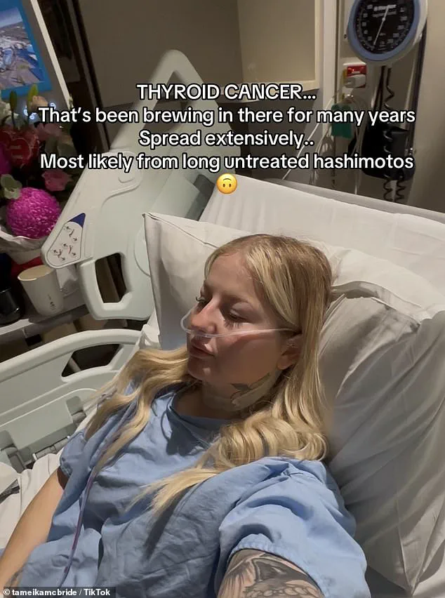 The 30-year-old, who has been chronicling her journey on TikTok, had been dealing with bouts of dizziness, heart palpitations, and unexplained weight gain for years but was told it was nothing more than anxiety. ‘I had a lot of symptoms over the years, including hair loss, weight gain, dry skin, heart palpitations, irritability, numb toes, anxiety, and fatigue,’ she told the Daily Mail. ‘I think I’ve had these symptoms since I was a teenager, but for years they were dismissed or thought to be anxiety.’ However, the mom-of-two knew something more was wrong, and after years of being dismissed by doctors, an ultrasound in January 2025 revealed that she had thyroid cancer. ‘I felt devastated,’ she reflected. ‘It was such a shock, but at the same time, I was relieved to finally have an explanation for everything my body had been going through.’