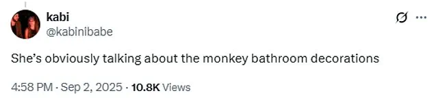 Another viewer posted a photo of the bathroom’s monkey-themed decorations and wrote, “She heard someone walking in on their convo and tried changing the convo, clearly pointing out these…” A third user added, “She’s obviously talking about the monkey bathroom decorations.” Critics of the backlash argue that such accusations, even if based on misunderstandings, risk normalizing the spread of false claims about racism. “The more you guys make up racism scandals that don’t exist, the less likely people will be to care about actual racism when it happens,” one commenter wrote. “This is pathetic.”
