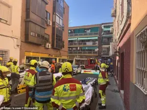 The blast, which occurred around 3 p.m. on Manuel Maroto Street in the Puente de Vallecas district, sent shockwaves through the neighborhood and left a scene of chaos, with shattered glass, upturned doors, and rubble strewn across the ground.