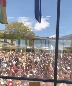 The debate’s ‘fishbowl’ area, a space designed for public engagement, became the scene of chaos as a massive crowd fled in terror.