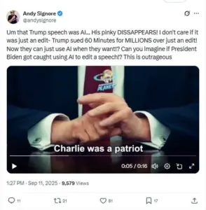 The Oval Office speech delivered by President Donald Trump following the assassination of conservative activist Charlie Kirk has sparked a firestorm of controversy, with claims emerging that the video was artificially generated using AI.