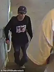 The FBI has released images of a ‘person of interest’ in the case, a slim individual wearing all black, a snapback with sunglasses, long pants, and a long-sleeved top.