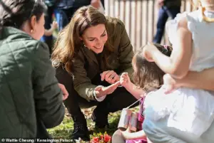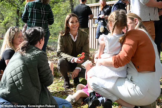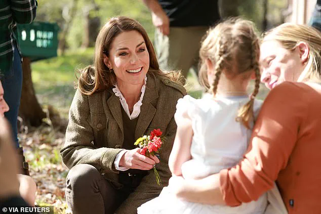 Kate appeared to offer a sweet bundle of flowers to one little girl who was part of the outdoor learning group