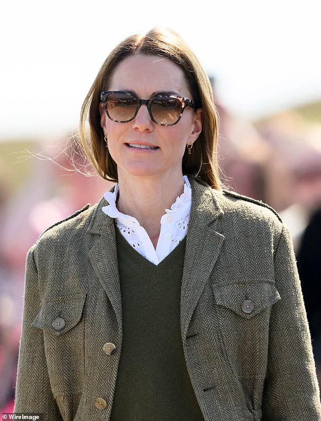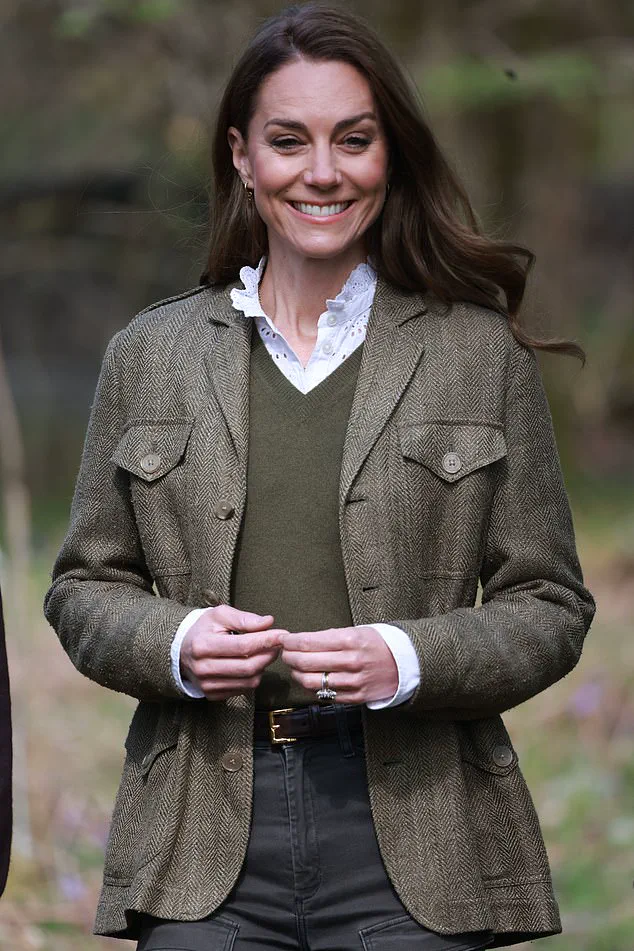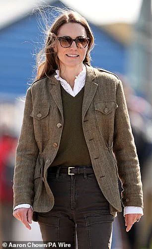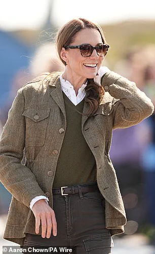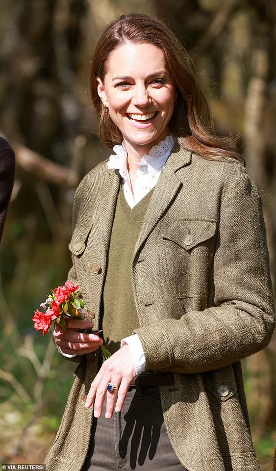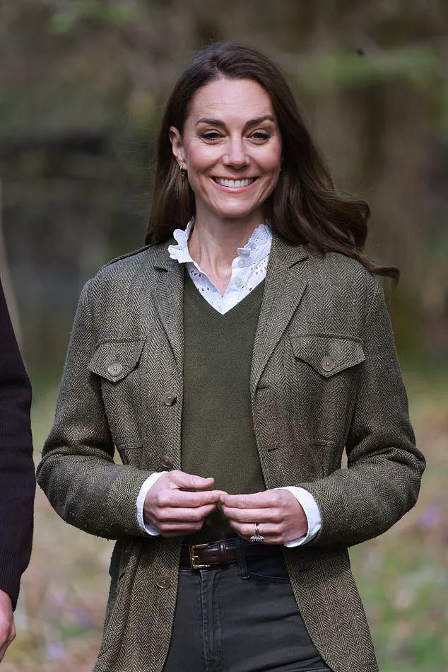 Kate was seen in high spirits, her presence a beacon of elegance in a monochrome deep green ensemble complemented by a tweed coat.