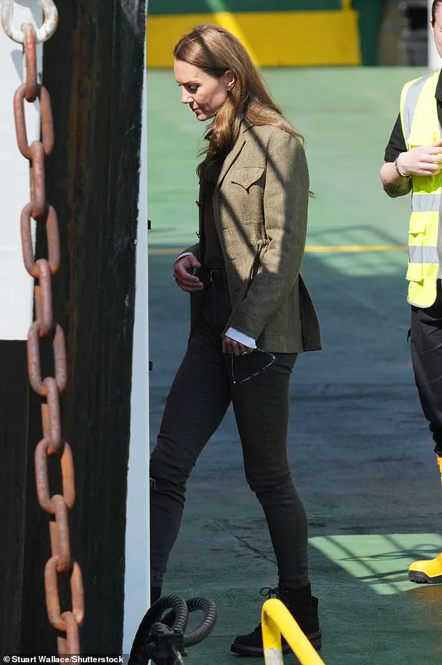 Kate, pictured, was effortlessly elegant as she boarded the ferry to travel over to the Island of Iona.
