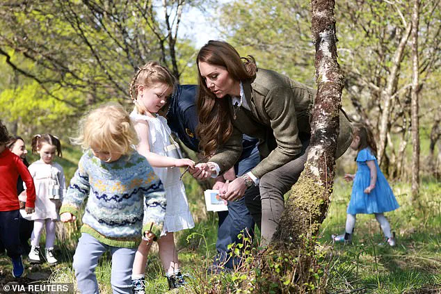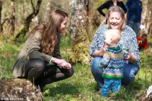 Kate, 43, who joined her husband on a nature outing on the Isle of Mull this morning, was a hit with young school kids who frolicked around a community forest with the royal couple on Wednesday.