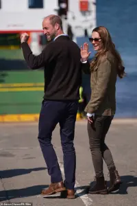 The Prince and Princess of Wales waved to members of the public before taking the ferry on Wednesday afternoon