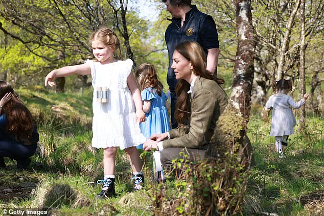 Kate, 43, who joined her husband on a nature outing on the Isle of Mull this morning, was a hit with young school kids who frolicked around a forest with the royal couple on Wednesday.