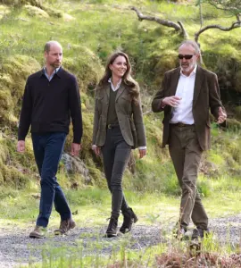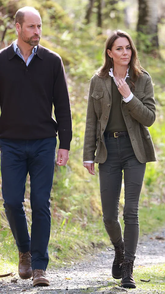 As they walked together through the community forest named Doir a’Chuilinn or holly grove, which dates back to medieval times with its oldest tree being 300 years old, the couple’s affection was evident as Kate placed her hand on William’s back during their stroll.