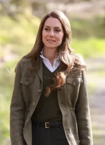 For their walk through the community forest, Kate wore practical skinny jeans and hiking boots, her hair kept relaxed as she strolled alongside the Duke.