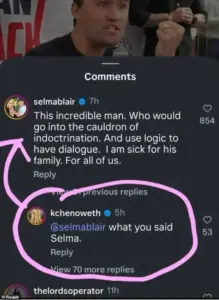For all of us.’* The message, which was quickly flagged by users, has since led to a wave of backlash against Blair, forcing her to disable comments on her social media accounts.