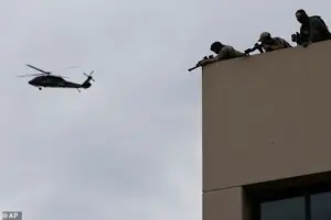 Organizers of a nighttime ‘laser party’ urged locals to shine laser pointers at federal helicopters hovering near the Portland ICE facility, a tactic they claimed was designed to ‘deter the federal regime.’ The event, which drew both supporters and critics, highlighted the desperation of activists who feel increasingly isolated in their efforts to resist what they call ‘Trump’s authoritarian overreach.’ However, the strategy backfired in part, as armed ICE officers were already stationed on the facility’s roof, prepared for the anticipated demonstration.