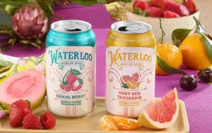 Waterloo Sparkling Water is a uniquely authentic, refreshing and full-flavor anytime drink unlike any other. Pictured are two newer flavors, Guava Berry and Ruby Red Tangerine