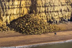 Dorset Council said: ‘Rockfalls and landslips can happen at any time.
