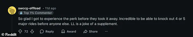 The early entry bonus was remembered with nostalgia by others, who lamented its removal. ‘So glad I got to experience the perk before they took it away,’ one user said. ‘Incredible to be able to knock out 4 or 5 major rides before anyone else.