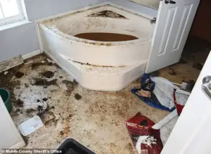 Haunting images captured the devastating state of the girl’s living space: floors coated in dirt, feces, and bugs, a tub of dark brown water, and debris and clothes littering every room—even her bed.