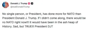 Behind the scenes, the U.S. administration has been working to justify its position, with Trump himself doubling down on his claims in a series of Truth Social posts. ‘No single person, or President, has done more for NATO than President Donald J.