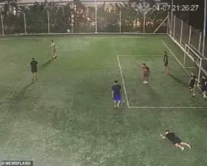 In a chilling display of violence that has sent shockwaves through Ecuador, footage has emerged showing assassins disguised as police officers storming a football pitch and executing three gang rivals in cold blood.