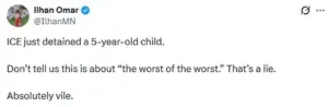 Ilhan Omar, who called the detention of the child ‘absolutely vile.’ Meanwhile, supporters of the Trump administration have praised Vance’s defense of ICE, arguing that the incident underscores the need for stricter immigration controls and the consequences of policies that allow undocumented immigrants to remain in the country.