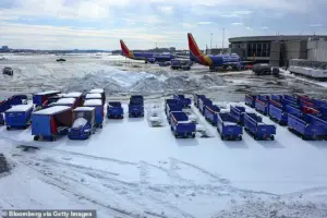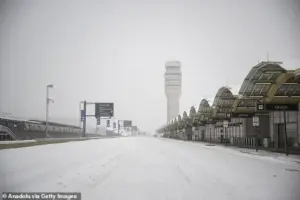 As the storm continued to batter the region, passengers like Hains were left questioning the airline’s preparedness and communication during the crisis. ‘It was a nightmare,’ Hains said. ‘We were left hanging with no clear answers.’