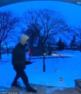 A shocking video has emerged showing an Amazon delivery driver in Michigan unleashing a profanity-filled rant about his workload, captured by a Nest doorbell camera outside a Redford Township home. The footage, obtained by WXYZ Detroit, shows the unidentified driver trudging through snow with multiple packages, unaware that his outburst was being recorded. ‘I got a million multi-stops because these people out here in Dearborn Heights can’t go anywhere and get their own f****** s***,’ he shouted, his voice shaking with frustration. ‘Now I’m sitting out here delivering a million packages to a million and one f****** houses.’